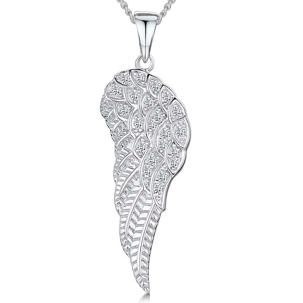 Sterling Silver Single Angel Wing Cubic Zirconia Pendant