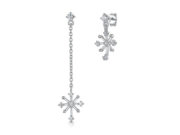 Sterling Silver Snowflake Long Short Chain Earrings