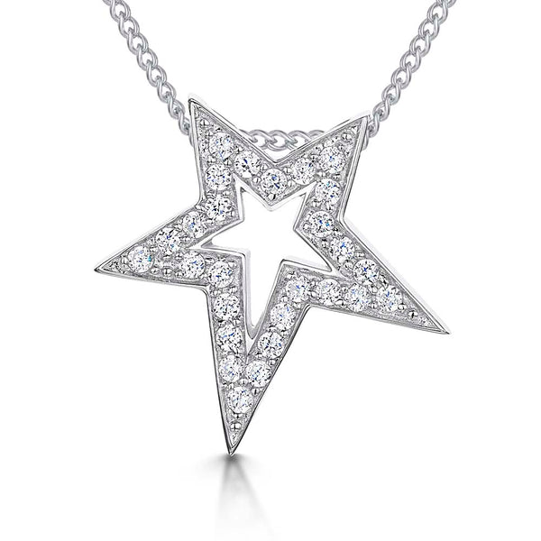 Sterling Silver Open Star Pendant Set With Cubic Zirconias