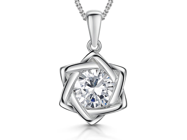 Sterling Silver Offset Open Star Pendant Set With Cubic Zirconias