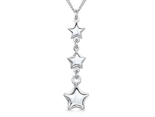 Sterling Silver Three Star Drop North Star Necklace
