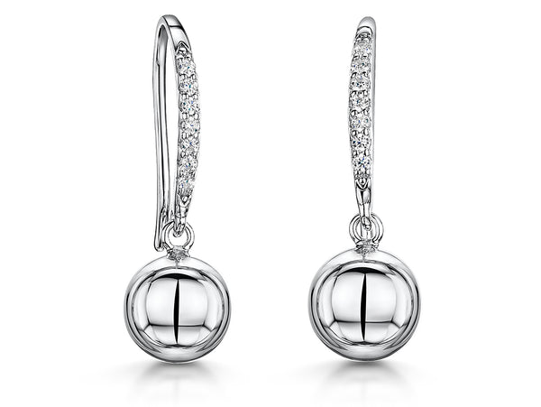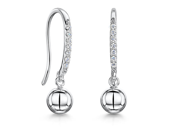 Sterling Silver Ball Fishhook Drop Earrings
