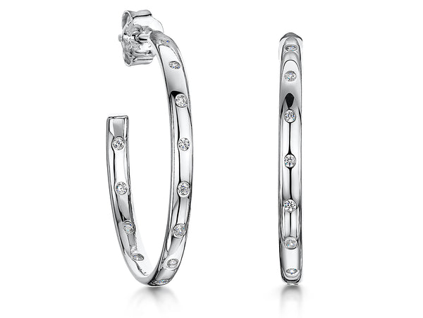 Sterling Silver 3/4 Hoop Earrings Studded With Cubic Zirconia