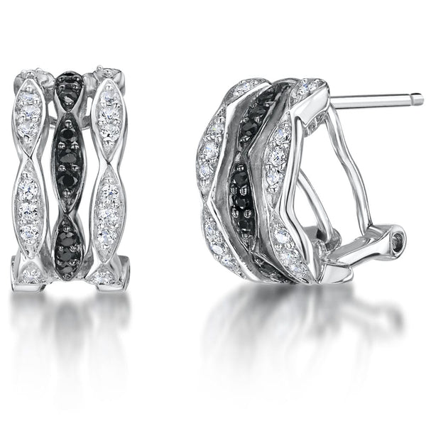 Sterling Silver Black And White Huggie Hoop Earrings