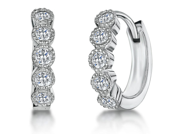 Sterling Silver Huggie Hoop Earrings With Beaded Millgrain Surround