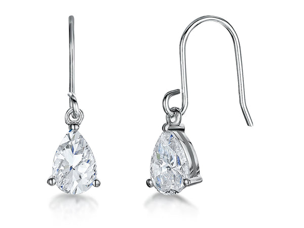 Sterling Silver Pear Cut Cubic Zirconia Drop Earrings