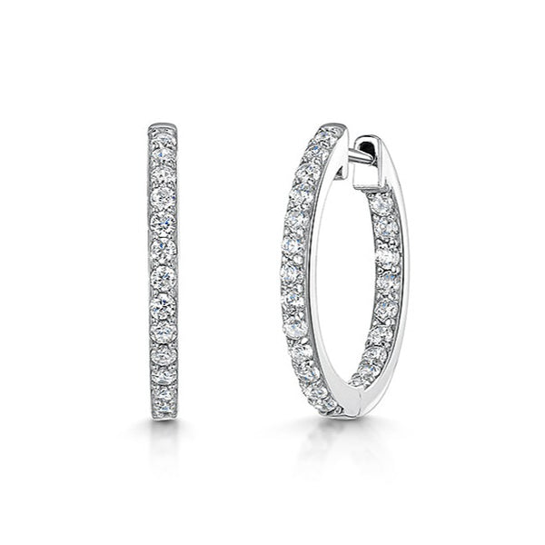 Sterling Silver Medium Hoop Earrings Set With Cubic Zirconia
