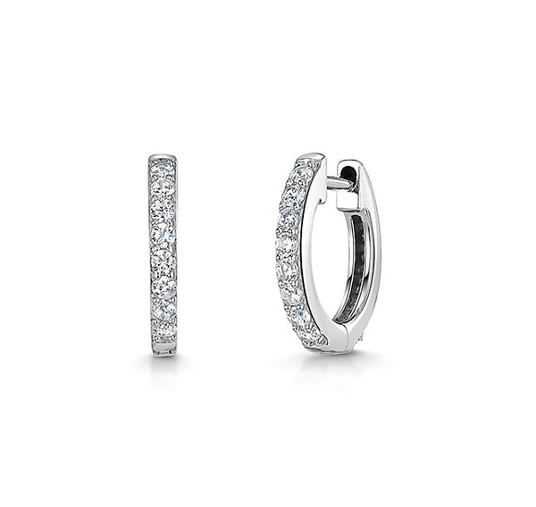 Sterling Silver Hoop Earrings Set With Cubic Zirconias.