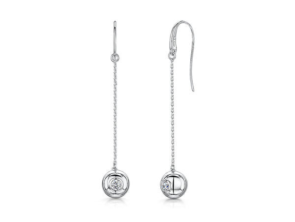 Sterling Silver Medium Ball & Long Chain Drop Earring Set With Cubic Zirconia