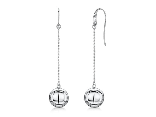 Sterling Silver Large Ball & Long Chain Drop Earring