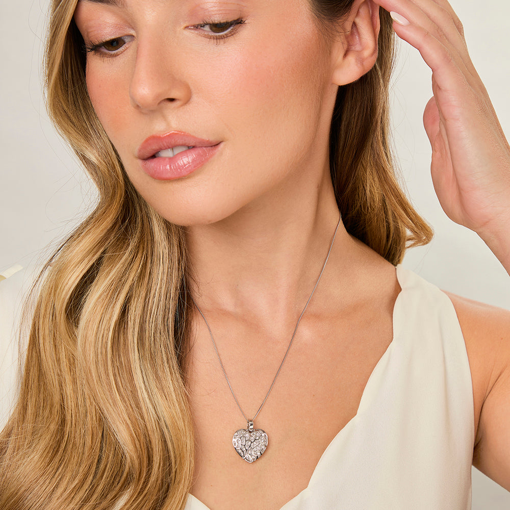 A sterling silver heart-shaped pendant covered in sparkling white cubic zirconia stones.-JOOLS by Jenny Brown