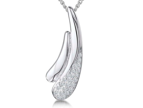 Sterling Silver Pave Set Curved Pear Shaped Pendant