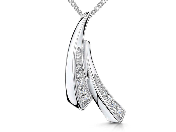 Sterling Silver Pave Set Split Curve Pendant