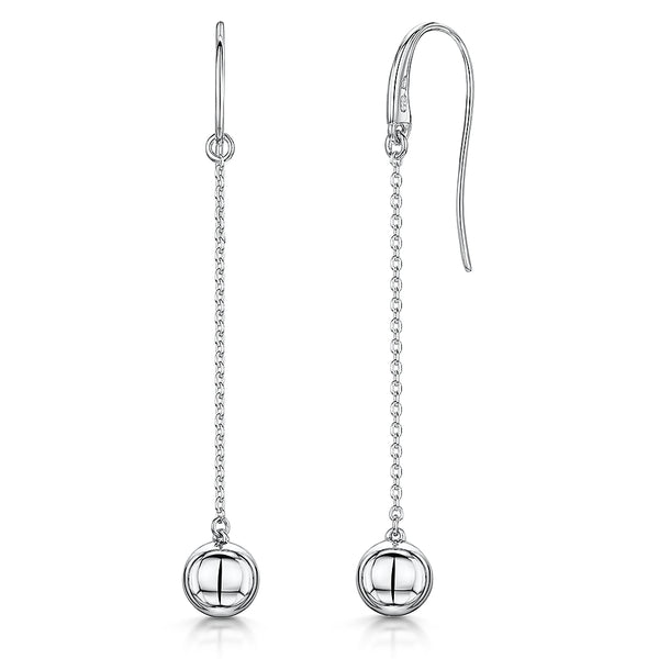 Sterling Silver Large Ball & Long Chain Drop Earring
