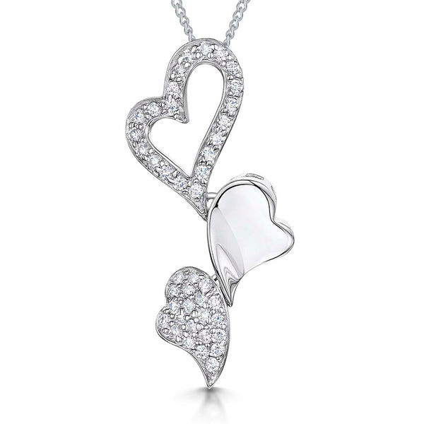 Sterling Silver & Cubic Zirconia Pave Set Triple Heart Pendant