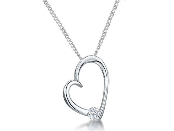 Sterling Silver Small Cubic Zirconia Tipped Heart Pendant