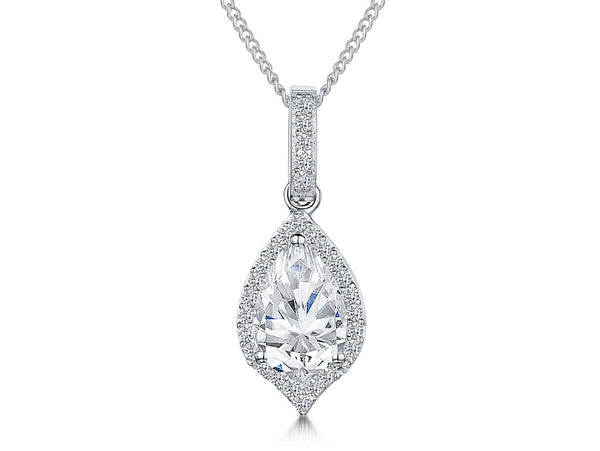 Sterling Silver Halo Pear Pendant