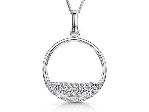 Sterling Silver Open Circle Pendant With Half Moon Pave Cubic Zirconias