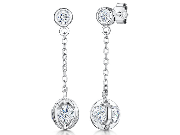 Sterling Silver Cage Set Cubic Zirconia Earrings