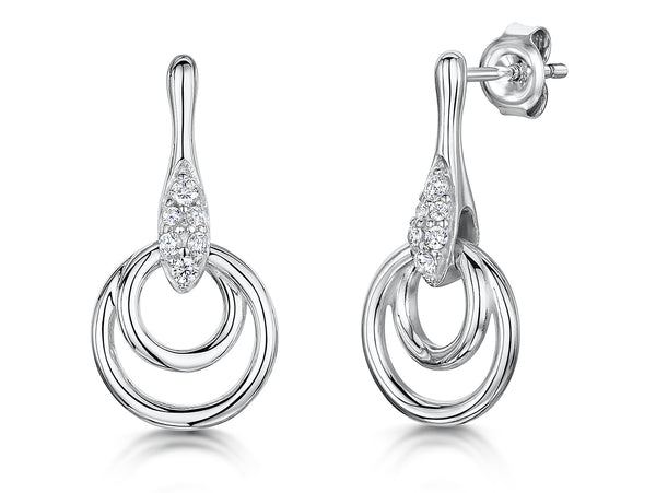 Sterling Silver Drops With Double Circles and Cubic Zirconia
