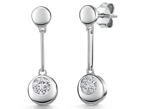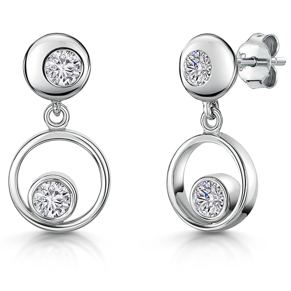 Sterling Silver Circle Drop Earrings With Rub Over Cubic Zirconias
