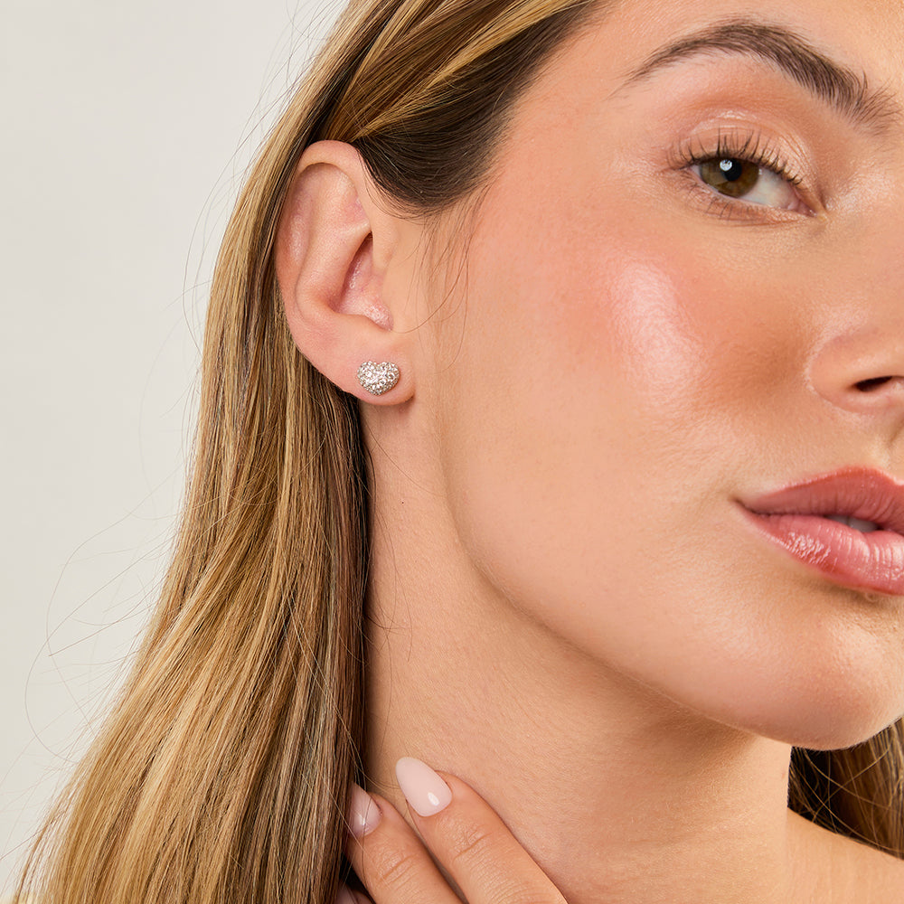 Sterling Silver Heart Stud Earrings Pave Set With Cubic Zirconia Stones - JOOLS By Jenny Brown