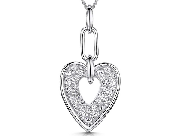 Sterling Silver Heart Pendant With Pave Cubic Zirconia's