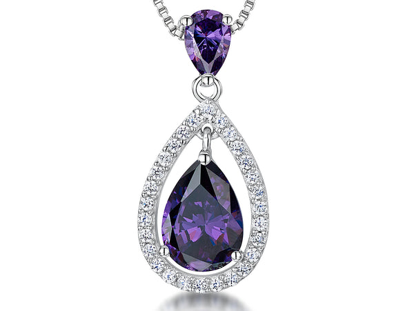 Sterling Silver Amethyst Zirconia Halo Pendant