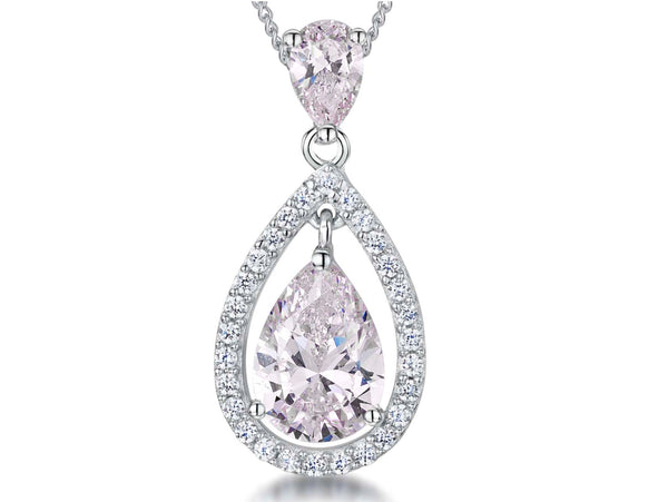 Sterling Silver Light Pink Halo Teardrop Pendan