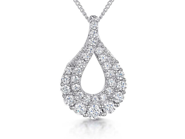 Sterling Silver Teardrop Twist Cubic Zirconias Pendant