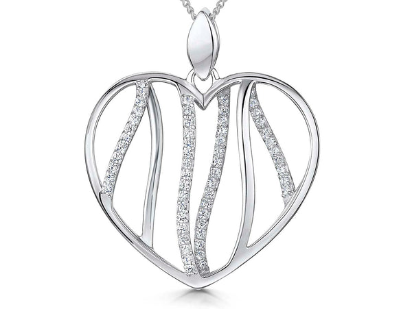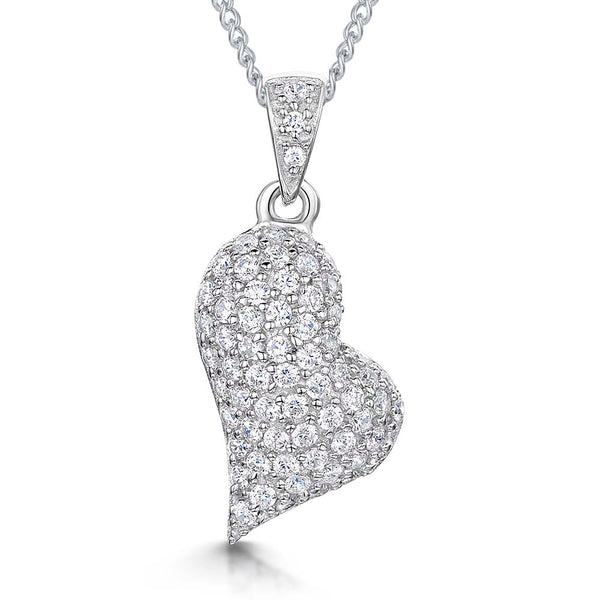 Sterling Silver Offset Heart Pendant Pave Set