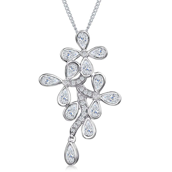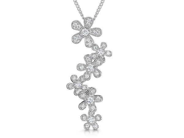 Sterling Silver Cascading Flower Pendant Set With Cubic Zirconia Stones