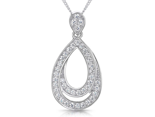 Sterling Silver Pave Set Double Teardrop Pendant