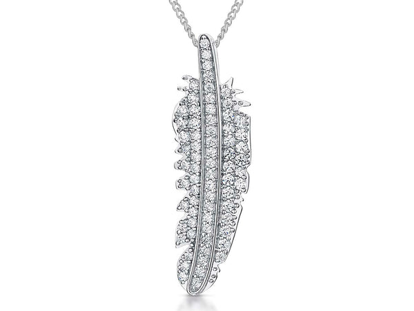 Sterling Silver Feather Pendant Set With Cubic Zirconias