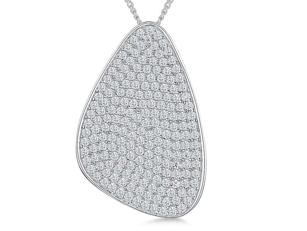 Sterling Silver Offset Rounded Triangle Pendant Encrusted With Cubic Zirconias
