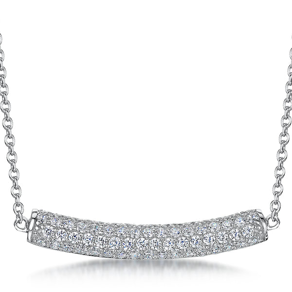 Sterling Silver Pave Set Curved Bar Pendant On A Fixed Chain