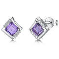 Sterling Silver Amethyst Cubic Zirconia Square Earrings