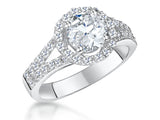 Sterling Silver And White Cubic Zirconia Ring - Set With A Single Brilliant Cut Round Stone With  A  Halo Stone Surround . 1.3  Carat  7 mm Centre Stone and 1.5 mm Stone Set Shoulders. The Finest AAA Grade Cubic Zirconia Stones. 925 Sterling Silver-Rhodium Finished For Tarnish Free Wear. Supplied With Gift Packaging