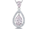 Sterling Silver Light Pink Zirconia  Pear Shape Teardrop Pendant. 7 x 10 Pear Shape Stone, 24 mm Long. Comes With An Adjustable 16-18 Inch Silver Chain. 925 Silver- Hypoallergenic. The Finest AAA Cubic Zirconia Stones. Rhodium Finished for Tarnish Free Wear.  Supplied With Gift Packaging.
