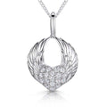 A sterling silver pendant featuring angel wings surrounding a heart-shaped pave with cubic zirconia  stones- JOOLS by Jenny Brown