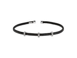 Sterling Silver Strand Bangle Finished In Black Rhodium Featuring Three Cubic Zirconia Set Bars . 18.25cm Diameter . The Finest AAA Cubic Zirconia Stones. 925 Sterling Silver-Tarnish Free .Supplied with Gift Packaging.