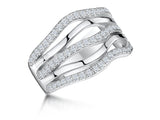 Sterling Silver Five Open Band Set With  57 Cubic Zirconia Stones . 1.25  mm Set  Stones. The Finest AAA Grade Round Cubic Zirconia Stones. The Finest AAA Grade Cubic Zirconia Stones. 925 Sterling Silver-Rhodium Finished For Tarnish Free Wear. A Ring Sizer Is Provided. Supplied With Gift Packaging.