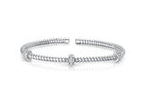 Sterling Silver Cuff Stacking Bangle Set With Cubic Zirconia Wheels