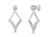 Sterling Silver Art Deco Diamond Shape Drop Earrings