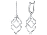 Sterling Silver Offset Double Square Drop Earrings Silver and Cubic Zirconia Set. 17 x 39mm In Diameter. Set With 1mm Stones. The Finest AAA Cubic Zirconia Stones. 925 Sterling Silver. Rhodium Finished -Tarnish Free. Supplied with Gift Packaging.