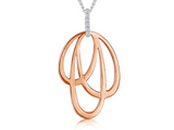 Rose Gold Pendant Featuring Three Open Ovals In An Overlapping Design. Cubic Zirconia Pave Bale. 20x34mm Overall Diameter. Rose Gold Plating On Sterling Silver. Supplied On A 16-18inch Adjustable Silver Chain. Comes With Gift Packaging.