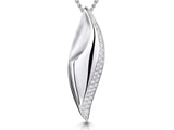 Polished & Textured Silver & Cubic Zirconia Pointed Pendant