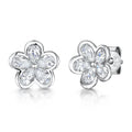 Sterling Silver Flower Earrings Set With Five Cubic Zirconia Petals - JOOLS By Jenny Brown