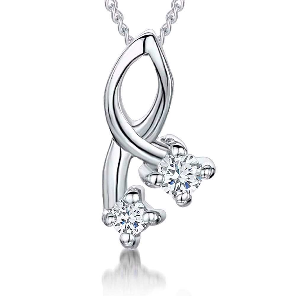 Small Cubic Zirconia Twist Pendant. 2 & 2.5mm Cubic Zirconias, 7x12mm Overall Diameter. Supplied On 16-18inch Adjustable Silver Chain. Comes With Gift Packaging.