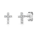 Rhodium Plated Sterling Silver Cross Stud Earrings. 1.5mm Cubic Zirconias. 5x7mm Overall Diameter. 925 Sterling Silver For Tarnish Free Wear. Supplied With Gift Packaging